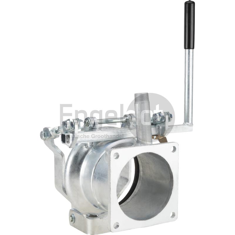 De uitvoering heeft ontluchting: bovenop zit een ontluchtingspijp met buitendraad om druk/vacuüm te laten ontsnappen (handig bij ontkoppelen en om restinhoud gecontroleerd te laten weglopen). Let op: er wordt geen kraan/ventiel meegeleverd; je kunt hier zelf een passende afsluiter of dop op zetten. Monteer de flens altijd met een rubberen flenspakking voor een lekvrije verbinding en controleer de rubber ring in het M-deel regelmatig op vuil en slijtage.