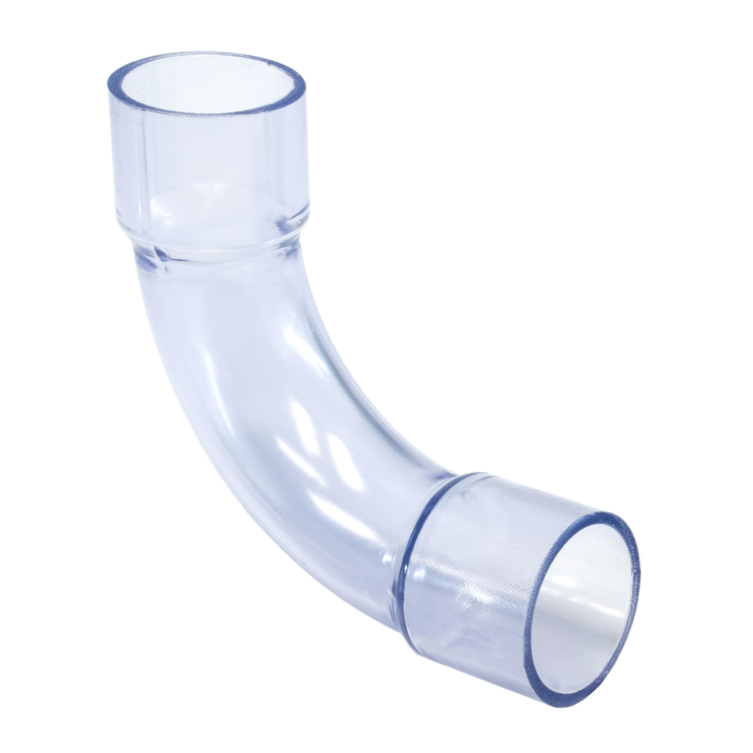 Deze doorschijnende bocht beschikt over twee mof aansluitingen. Dit betekent dat dit hulpstuk van 90 graden verlijmd moet worden met een PVC drukbuis. Dit hulpstuk is gemaakt van PVC en heeft een dikkere laag dan regulier PVC. Door de dikkere laag is dit hulpstuk bestendig tegen inwendige druk. Hierdoor is dit koppelstuk geschikt voor het vervoeren van water. Dit koppelstuk is bestendig tegen een maximale druk van 10 bar. Het hulpstuk vervormd als de temperatuur hoger is dan 60 graden.