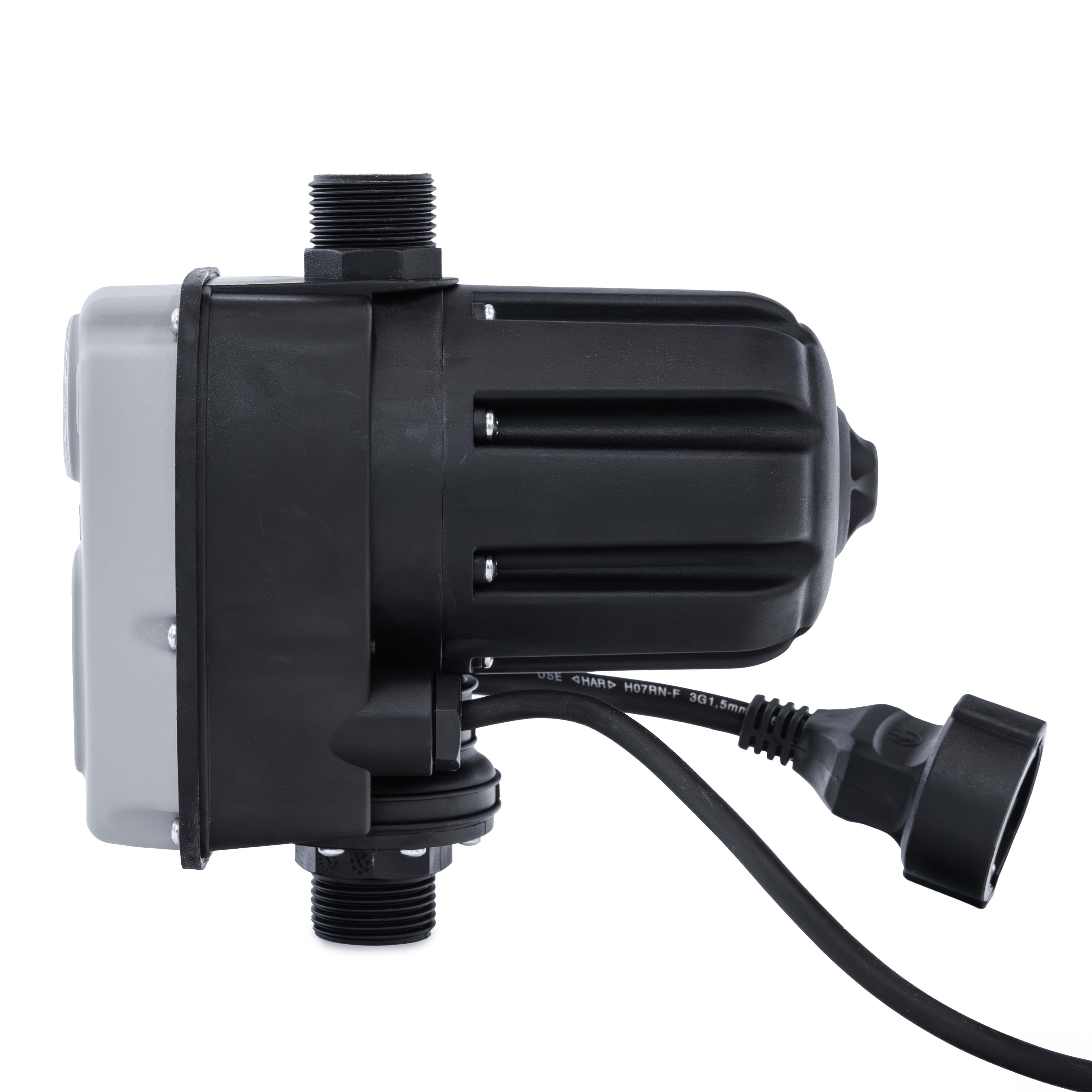 De Brio Tank Digital is een compacte, elektronische drukschakelaar met geïntegreerd drukvat voor het automatisch schakelen van 230V-pompen. Hij start de pomp zodra de druk in de leiding zakt (kraan open) en stopt bij het bereiken van de maximale systeemdruk (kraan dicht). Daarmee vervangt hij een traditionele combinatie van drukschakelaar + groot drukvat.