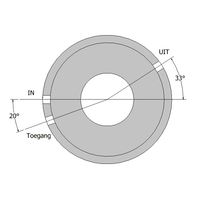HoogteH = 2000 mm, H-In = 1650 mm, H-Uit = 1570 mm