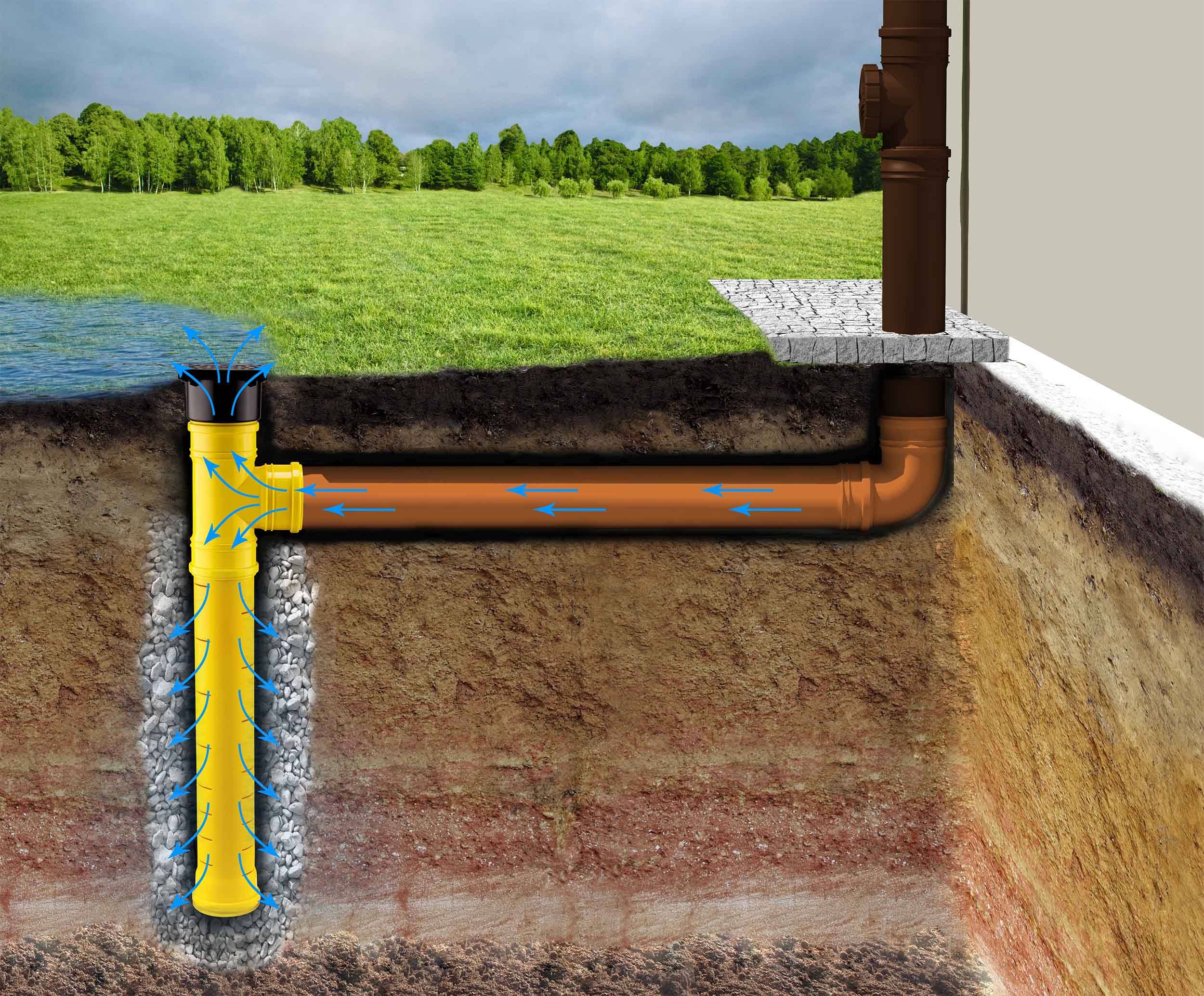 Karmat Overstortput ø110mm met infiltratiebuis, diepte 1 meter
